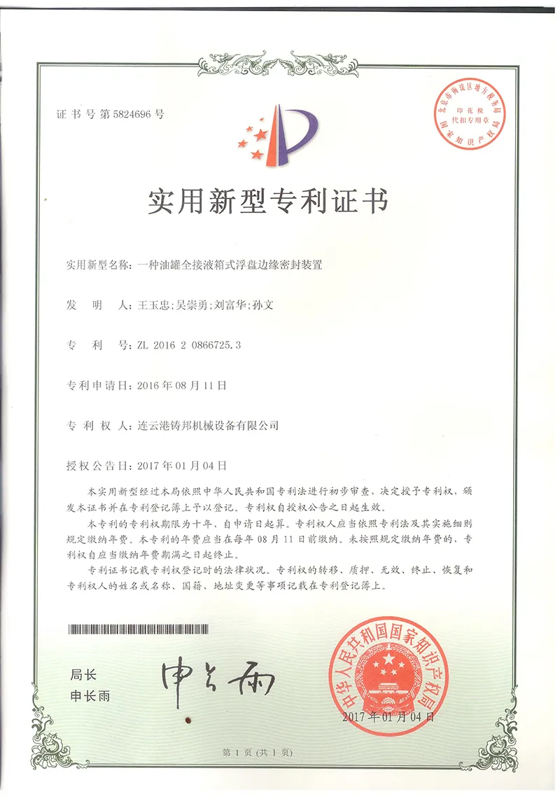 ООО Ляньюньган Чжубан Нефтехимическое Оборудование расположена по адресу: КНР, г. Ляньюньган, провинция Цзянсу, район Хайчжоу, Промышленный парк Синьпу, ул. Чуансинь, д. 3 — восточный конечный пункт моста Евразии. Компания была основана в ноябре 2010 года и является специализированным предприятием, профессионально занимающимся проектированием, изготовлением, системной интеграцией, строительно-монтажными работами и техническим консультированием в области экологии, хранения и транспортировки нефтехимической продукции. Компания ориентирована на проектирование и производство оборудования для сокращения выбросов летучих органических соединений (ЛОС) из резервуаров. Мы являемся одним из первых отечественных производителей, которые начали исследования, разработку и производство полностью поддерживаемых внутренних плавающих крыш и систем высокоэффективных уплотнений с большой компенсацией. Начиная с 2014 года, наша компания уже внедрила и ввела в эксплуатацию системы уплотнений плавающих крыш для сотен резервуаров в нефтехимической отрасли.